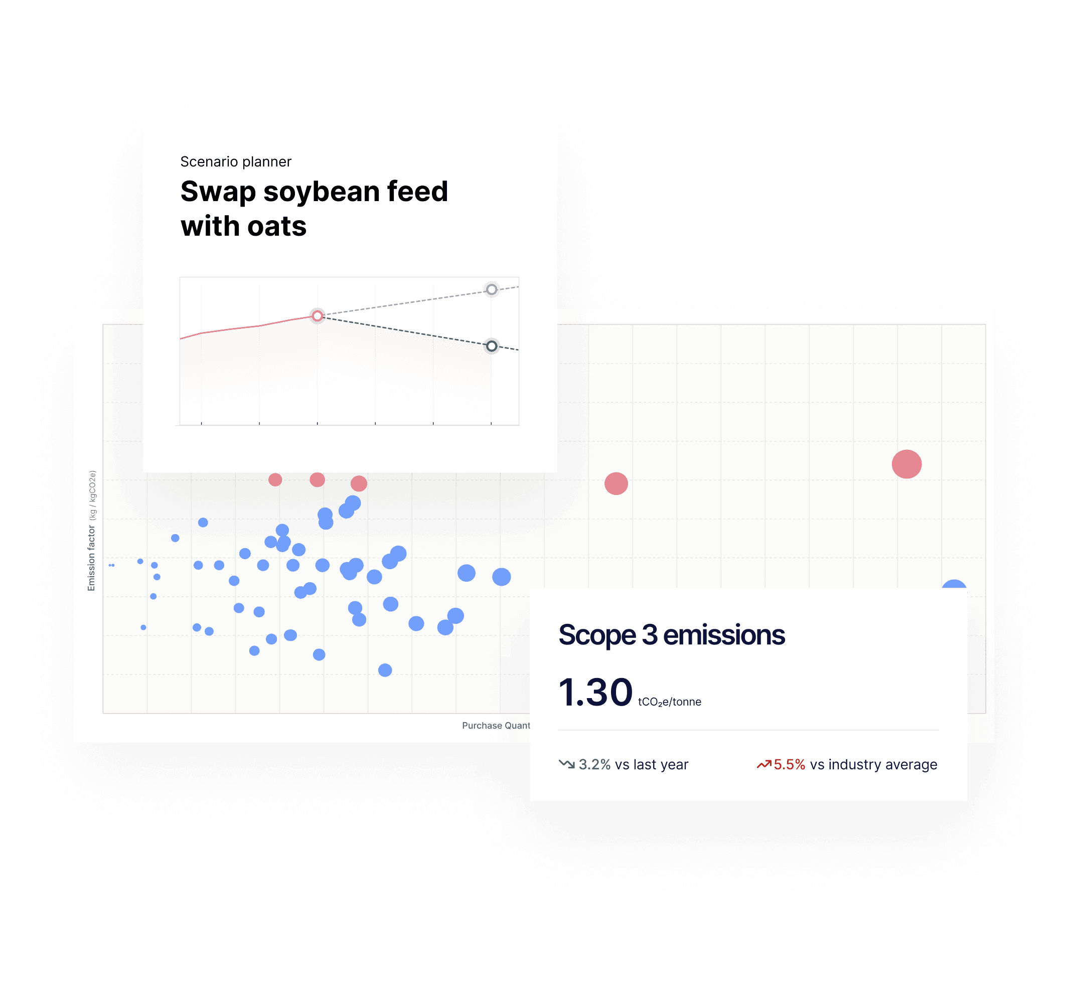 Centralise emissions data for your entire organisation in a single source of truth. Integrate farm-level activity data from your supply chain, track YoY changes across locations, materials and scopes, and plan reduction projects within your value chain.