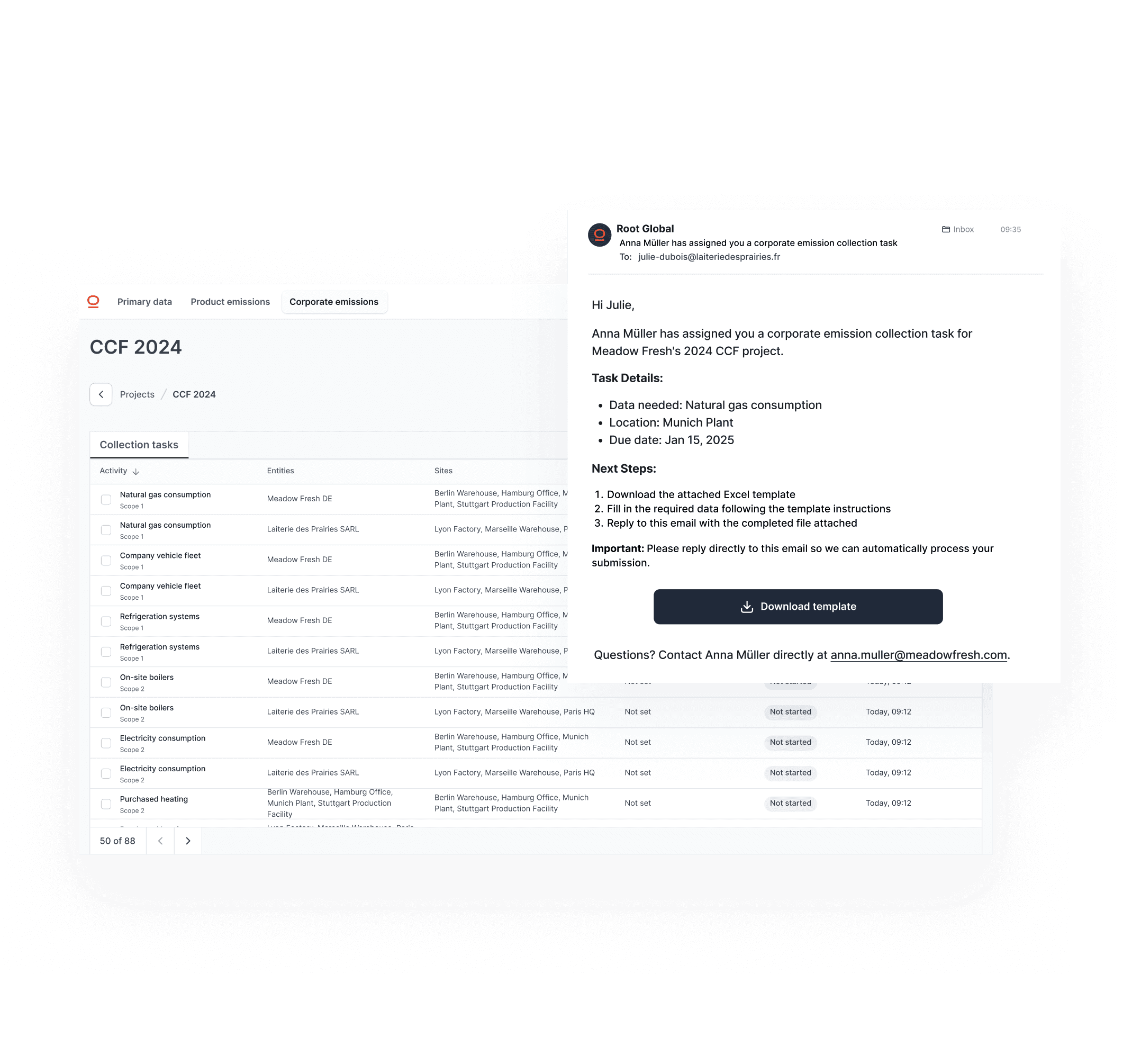 Our platform helps to collect data quickly with detailed project overviews, automated task creation and structured templates. Root’s in-house climate experts help define operational and organisational boundaries and offer continuous support and advice.