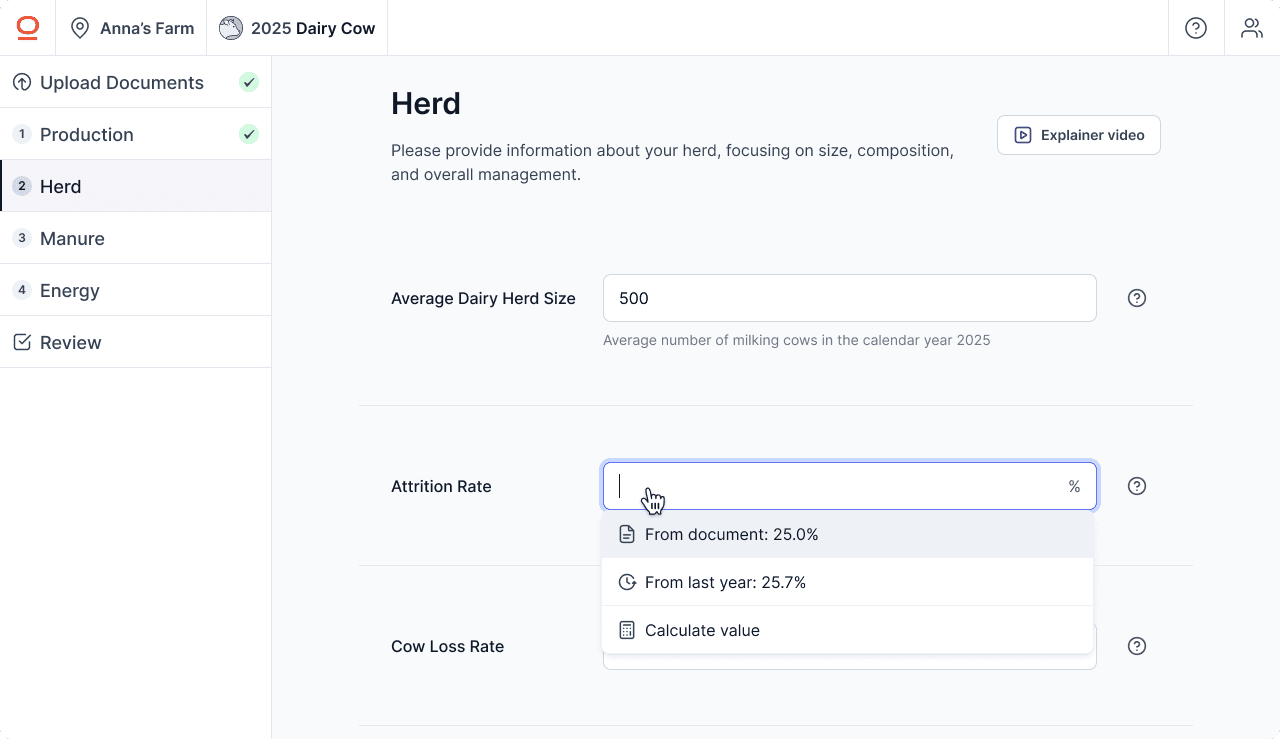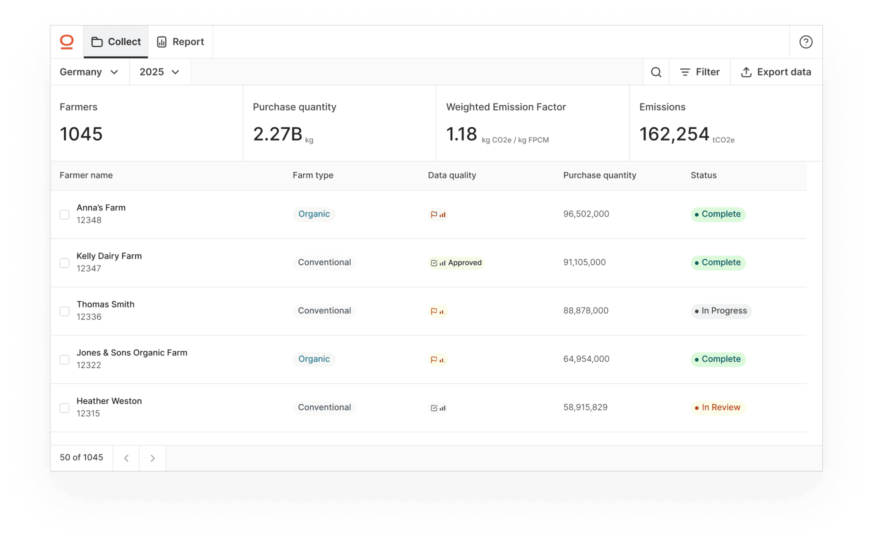 Emissions data is only viable for reporting and reduction if it’s accurate. Roots extracts data from existing documents to reduce human error, deploys dozens of automated quality checks based on real farm data, as well as providing a dedicated review centre to check flagged assessments.