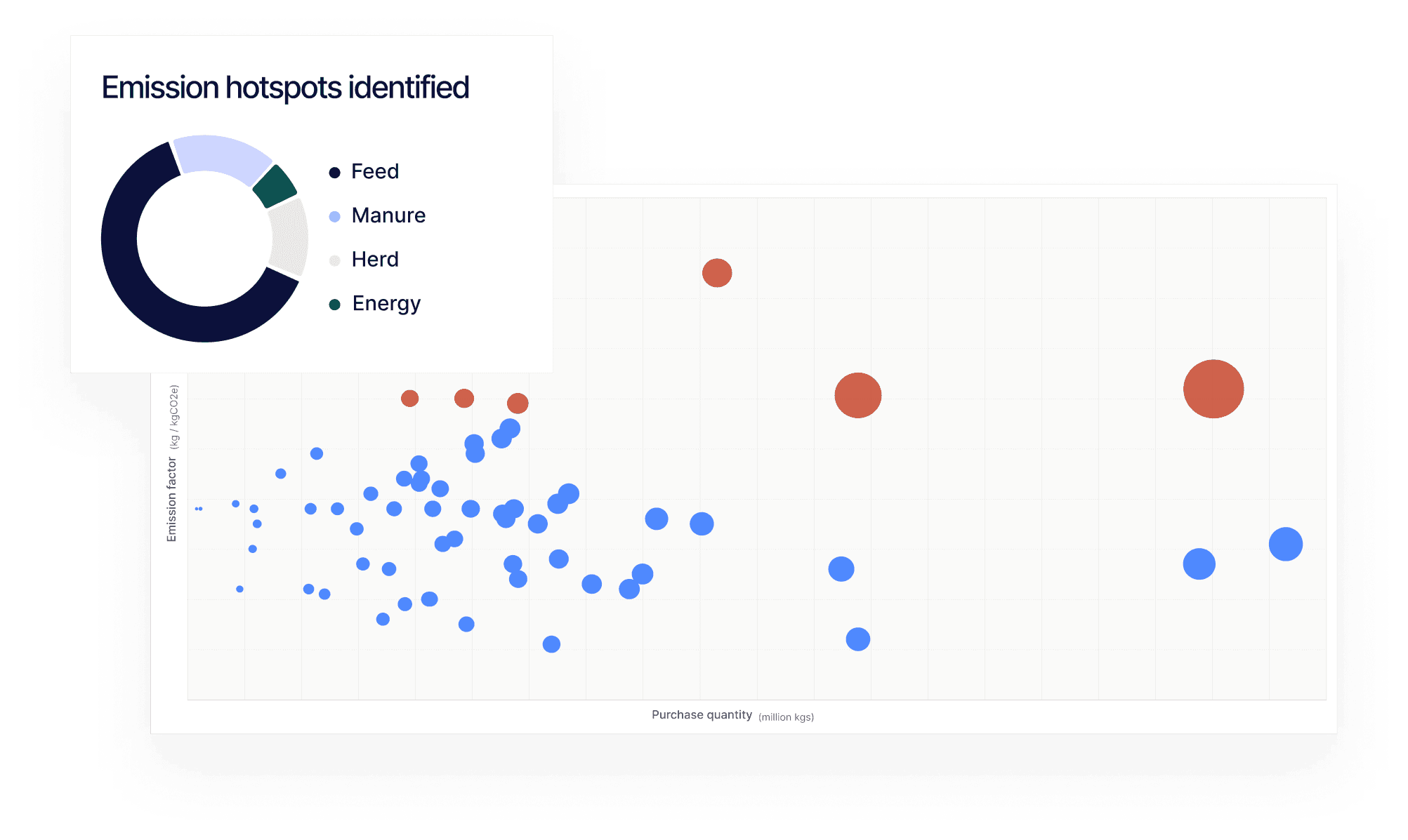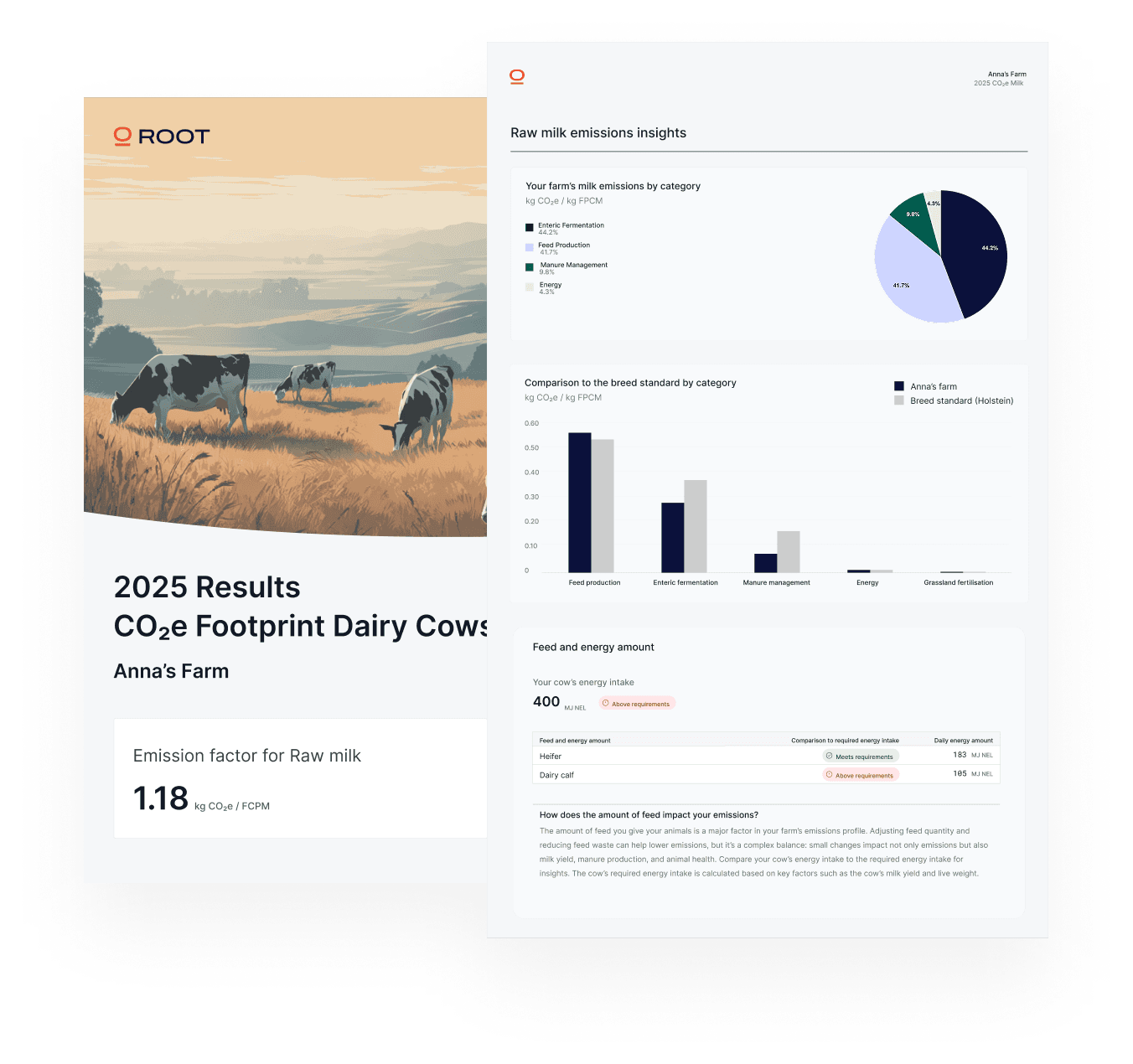 Dive deep into farm-level activity data with granular emissions analytics, integrated homegrown feed emissions and biodiversity data. Plan your next steps with a detailed end-of-year report prepared by Root’s climate experts.